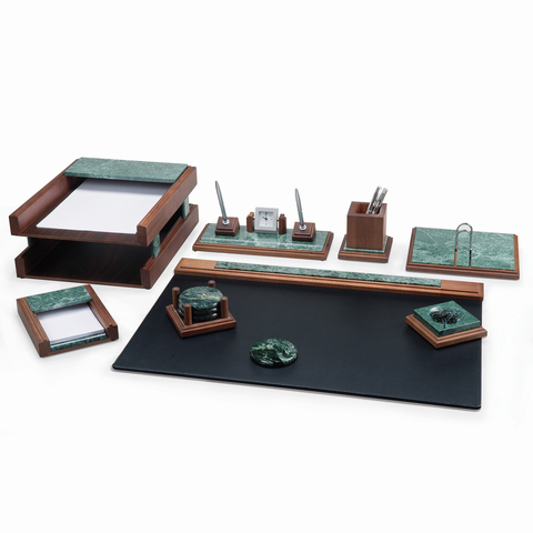 Набор настольный BESTAR "Zeus" мрамор, 8 предметов, двойной лоток, зеленый, орех, 236401
