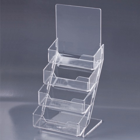 Удобная настольная подставка для визиток. Изготовлена из идеально прозрачного акрилового стекла в защитной (прозрачной или цветной) плёнке.