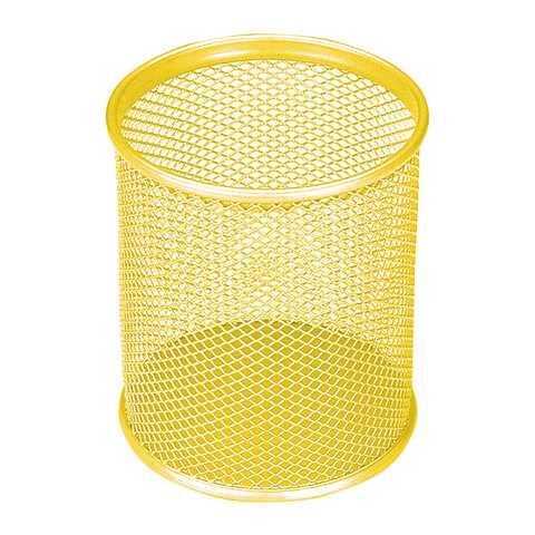Яркая металлическая подставка-органайзер с круглым основанием предназначена для хранения различных канцелярских принадлежностей.