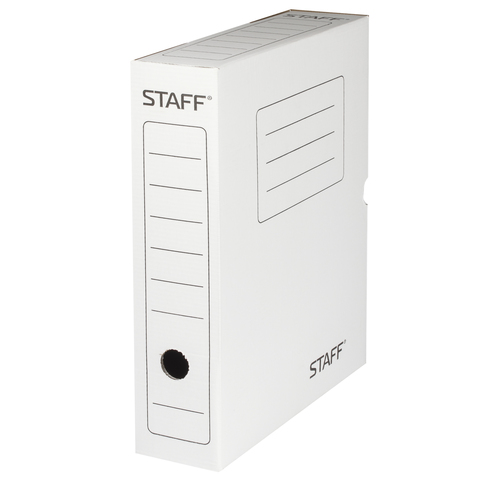 Короб архивный с клапаном, микрогофрокартон, 75 мм, до 700 листов, белый, STAFF, 128 858