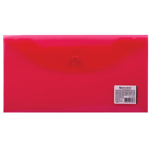 Папка-конверт с кнопкой МАЛОГО ФОРМАТА (250х135 мм), прозрачная, красная, 0,18 мм, BRAUBERG, 224030