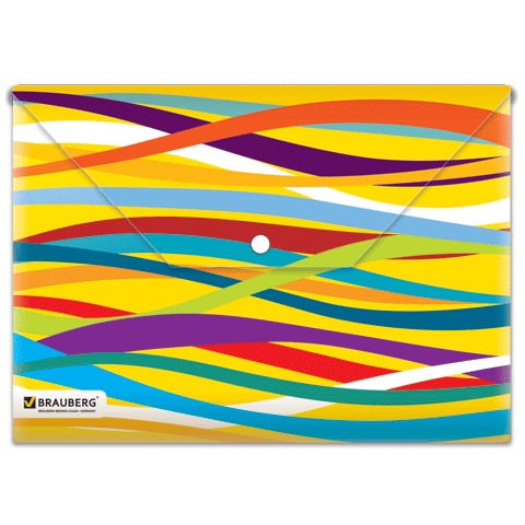 Папка-конверт с кнопкой и рисунком BRAUBERG "Экспрессия", А4, разноцветные полосы, 0,18 мм, 221426