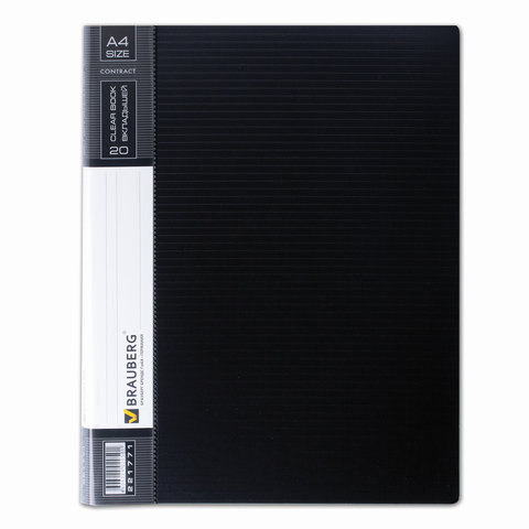 Папка 20 вкладышей BRAUBERG "Contract", черная, вкладыши-антиблик, 0,7 мм, бизнес-класс, 221771