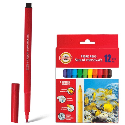 Фломастеры KOH-I-NOOR "Рыбки", 12 цветов, смываемые, трехгранные, картонная упаковка, европодвес, 771002AB05KS