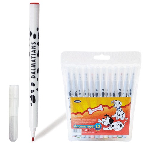 Фломастеры "Далматинцы" (Болгария), 12 цветов, европодвес, 092Д/12