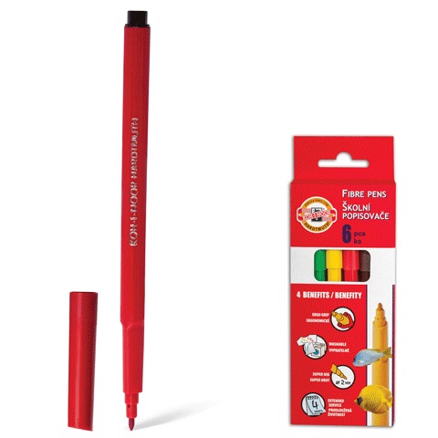 Фломастеры KOH-I-NOOR "Рыбки", 6 цветов, смываемые, трехгранные, картонная упаковка, европодвес, 771002JF05KS