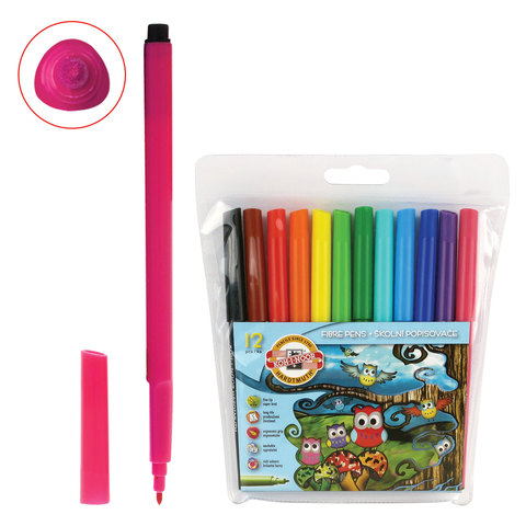 Фломастеры KOH-I-NOOR "Совы", 12 цветов, смываемые, трехгранные, пластиковая упаковка, европодвес, 771012AB01TE