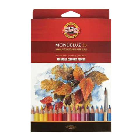 Карандаши цветные акварельные художественные KOH-I-NOOR "Mondeluz", 36 цветов, 3,8 мм, заточенные, европодвес, 3719036001KZRU