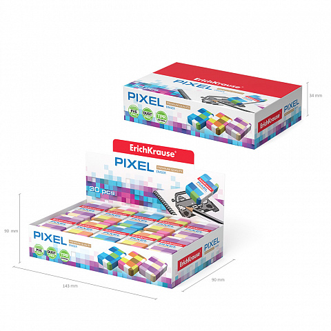 Ластик ERICH KRAUSE "Pixel", 44 х 27 х 10 мм, цвет ассорти, термопластичная резина, 48783