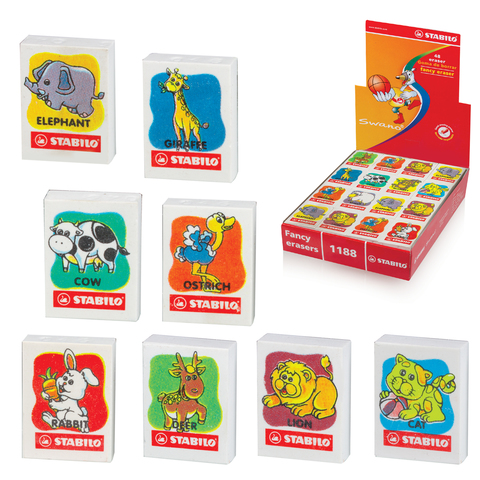 Резинка стирательная STABILO "Животные", ассорти, в дисплее, 1188/48LA