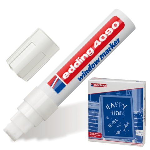 Маркер для окон и стекла EDDING 4090, 4-15 мм, смываемый, на меловой основе, белый, E-4090/49