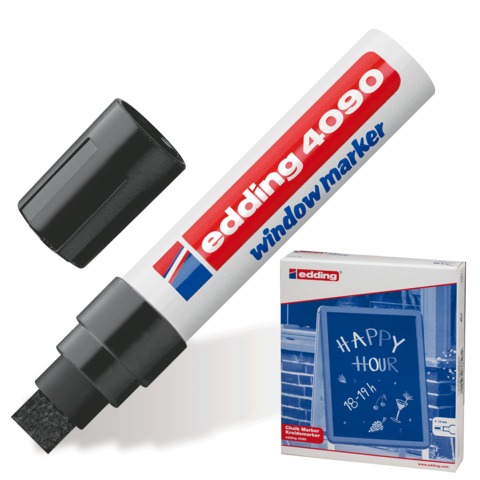 Маркер для окон и стекла EDDING 4090, 4-15 мм, смываемый, на меловой основе, черный, Е-4090/1