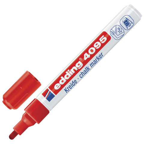 Маркер стираемый для окон, стекла и досок EDDING 4095, на меловой основе, 2-3 мм, красный,, E-4095/2