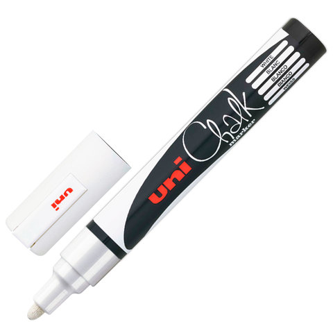 Маркер стираемый для окон, стекла и досок UNI "Chalk", на меловой основе, 1,8-2,5 мм, белый, PWE-5M WHITE