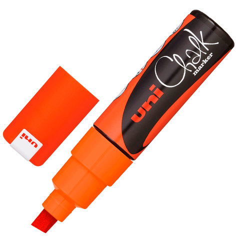 Маркер стираемый для окон, стекла и досок UNI "Chalk", на меловой основе, 8 мм, оранжевый, PWE-8K F.ORANGE