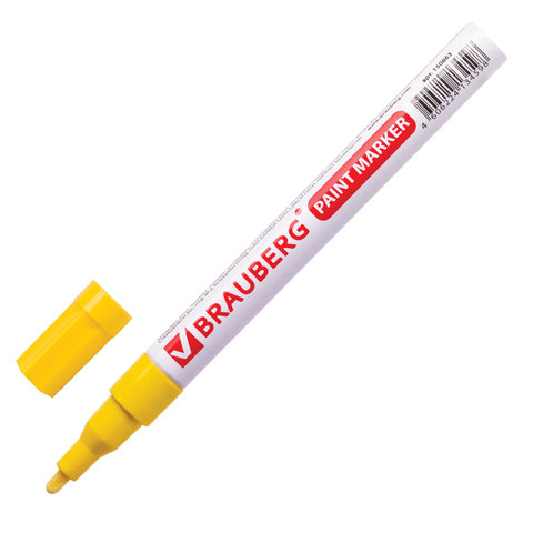 Маркер-краска лаковый, 1-2 мм, желтый, нитро-основа, алюминиевый корпус, BRAUBERG, 150863