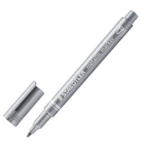 Маркер декоративный STAEDTLER (Штедлер, Германия), круглый наконечник, 2 мм, серебряный металлик, 8323-81