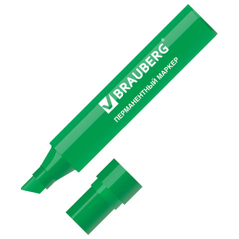 Маркер перманентный BRAUBERG "JUMBO", ШИРОКАЯ ЛИНИЯ ПИСЬМА, скошенный 3-10мм, зелёный, 151227