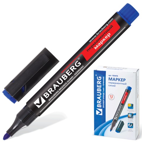 Маркер перманентный (нестираемый) BRAUBERG "Energy", с клипом, круглый наконечник 3 мм, синий, 150476