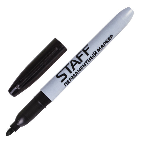 Маркер перманентный (нестираемый) STAFF, эргономичный корпус, круглый након. 2,5мм, черный, 151233