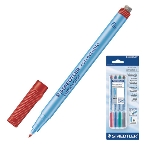 Маркеры универсальные для любой гладкой поверхности STAEDTLER, набор 4 штуки, 1 мм, стиратель, 305M WP4-1