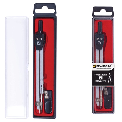 Готовальня BRAUBERG "Architect", 2 предмета: циркуль 140 мм со сгибаемой ножкой, точилка, пенал с подвесом, 210322