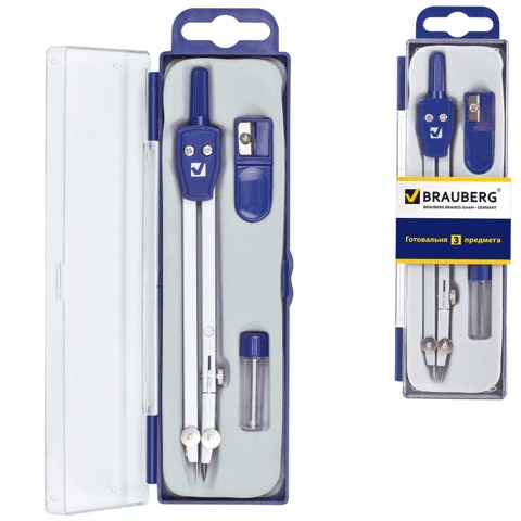 Готовальня BRAUBERG "Student Oxford", 3 предм.: циркуль 140 мм со сгибаемой ножкой, грифель, точилка, 210332