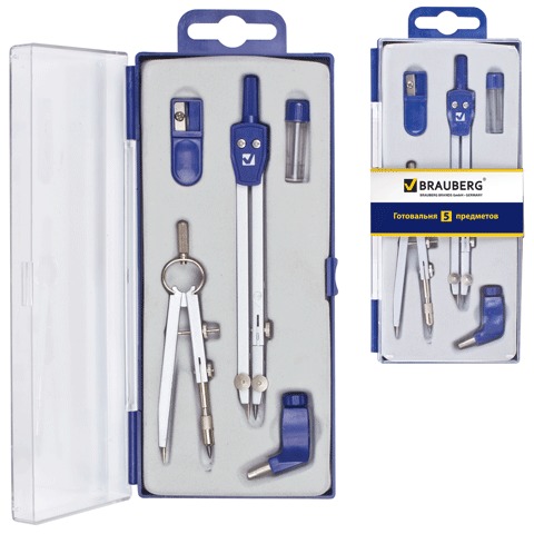 Готовальня BRAUBERG "Student Oxford", 5 предметов циркуль 140 мм+кронцир, держ. д/каран, гриф., точ., 210338