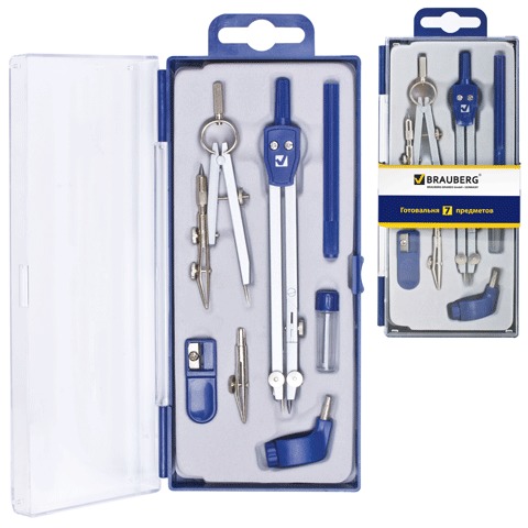 Готовальня BRAUBERG "Student Oxford", 7 предметов: наполнение-1, пенал с подвесом, 210347