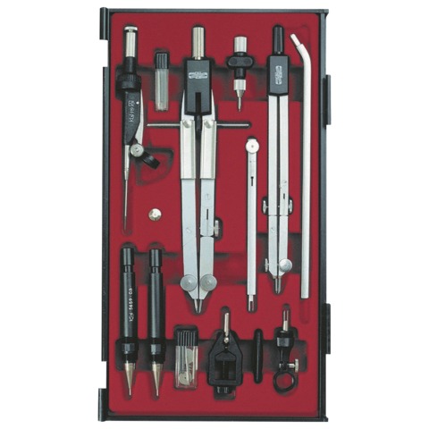 Профессиональная готовальня в пластиковом красном футляре с бархатной подложкой. Наполнение - 13 предметов. Инструменты предназначены для выполнения чертежных работ любой сложности как техническими специалистами, так и студентами.