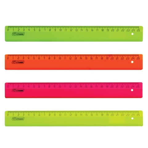 Линейка пластиковая 25 см, СТАММ "Neon Cristal", прозрачная, неоновая, ассорти, ЛН22