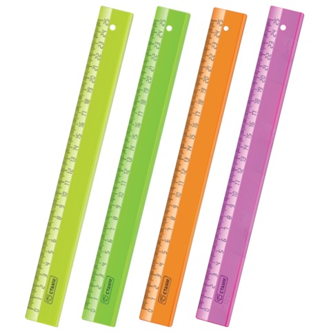 Линейка пластиковая, 30 см, СТАММ "Neon Cristal", с держателем, неоновая, ассорти, ЛН42