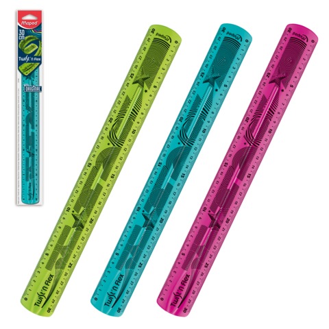 Линейка пластиковая 15 см, гибкая, MAPED (Франция) "Twist'n Flex", тонированная, ассорти, подвес, 279110