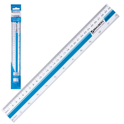 Линейка пластиковая 30 см, BRAUBERG, прозрачная с печатью на корпусе, европодвес, 210301