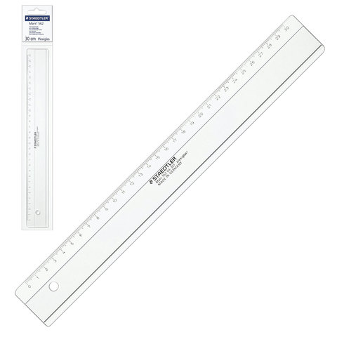 Линейка пластиковая 30 см, STAEDTLER (Германия) "Mars", оргстекло PLEXIGLAS, прозрачная, 562 04-30F02