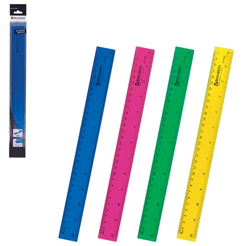 Прозрачная линейка из гибкого пластика. Имеет безопасные закруглённые углы и две чёткие контрастные шкалы делений: см и дюймы (inch). Предназначена для чертёжных работ. Поставляется в нескольких вариантах цвета (без возможности выбора).