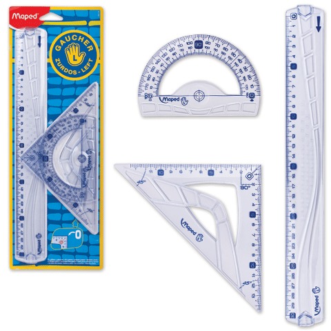 Набор чертежный большой для левши MAPED (Франция) "Geometric" (линейка 30 см, угольник, транспортир), блистер, 897118