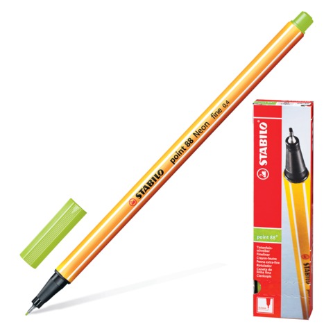 Ручка капиллярная STABILO "Point", корпус оранжевый, толщина письма 0,4 мм, неоновая зеленая, 88/033