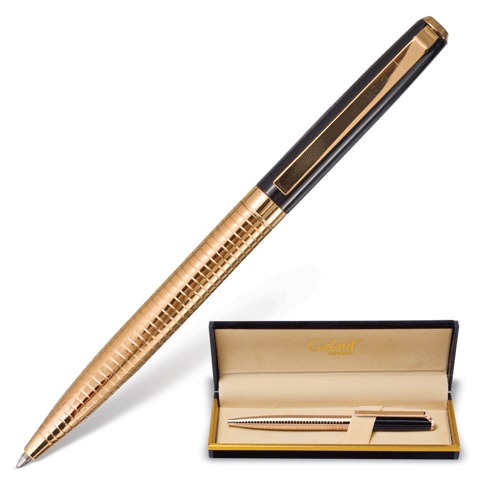 Ручка шариковая GALANT "Black Melbourne", подарочная, корпус золотистый/черный, золотистые детали, узел 0,7 мм, синяя, 141356