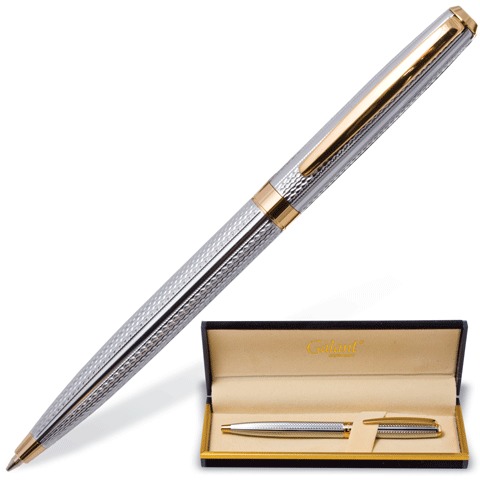Ручка шариковая GALANT "Marburg", подарочная, корпус серебристый, золотистые детали, узел 0,7 мм, синяя, 141015