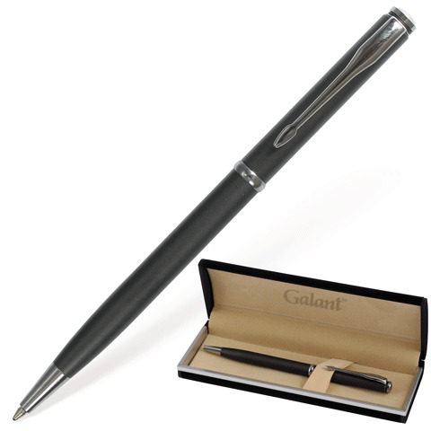 Ручка шариковая GALANT "Dark Chrome", подарочная, корпус матовый хром, золотые детали, узел 0,7 мм, синяя, 140397