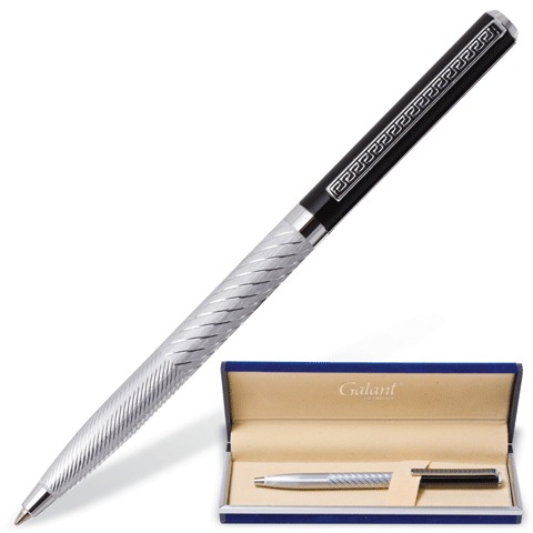 Ручка шариковая GALANT "Consul", подарочная, корпус серебристый/черный, золотистые детали, узел 0,7 мм, синяя