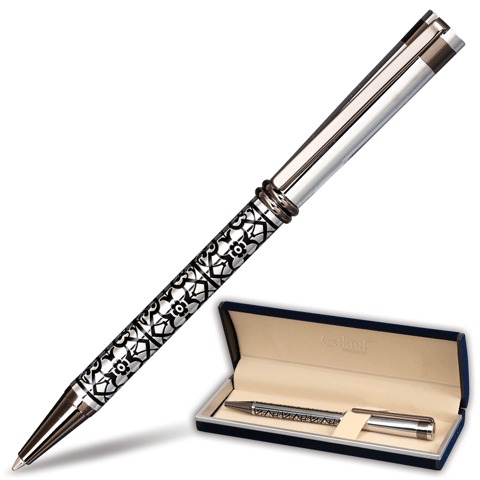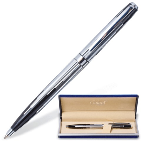 Ручка шариковая GALANT "Offenbach", подарочная, корпус серебристый/черный, хромированные детали, узел 0,7 мм, синяя, 141014