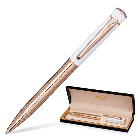Ручка шариковая GALANT "Mont Pelerin", подарочная, корпус золотистый/белый, золотистые детали, узел 0,7 мм, синяя, 141661