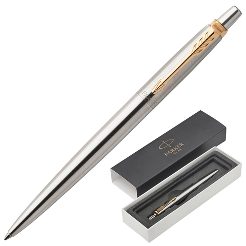 Ручка шариковая PARKER "Sonnet Steel GT", корпус серебристый, нержавеющая сталь, позолоченные детали, черная, 1931507
