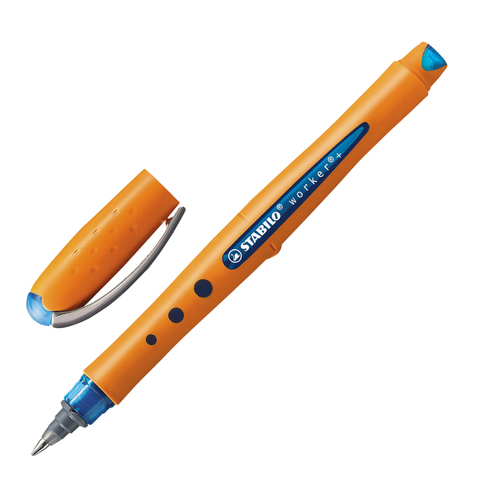 Ручка-роллер STABILO "Worker", оранжевый корпус "soft-touch", узел 0,7 мм, линия 0,5 мм, синяя, 2018/41