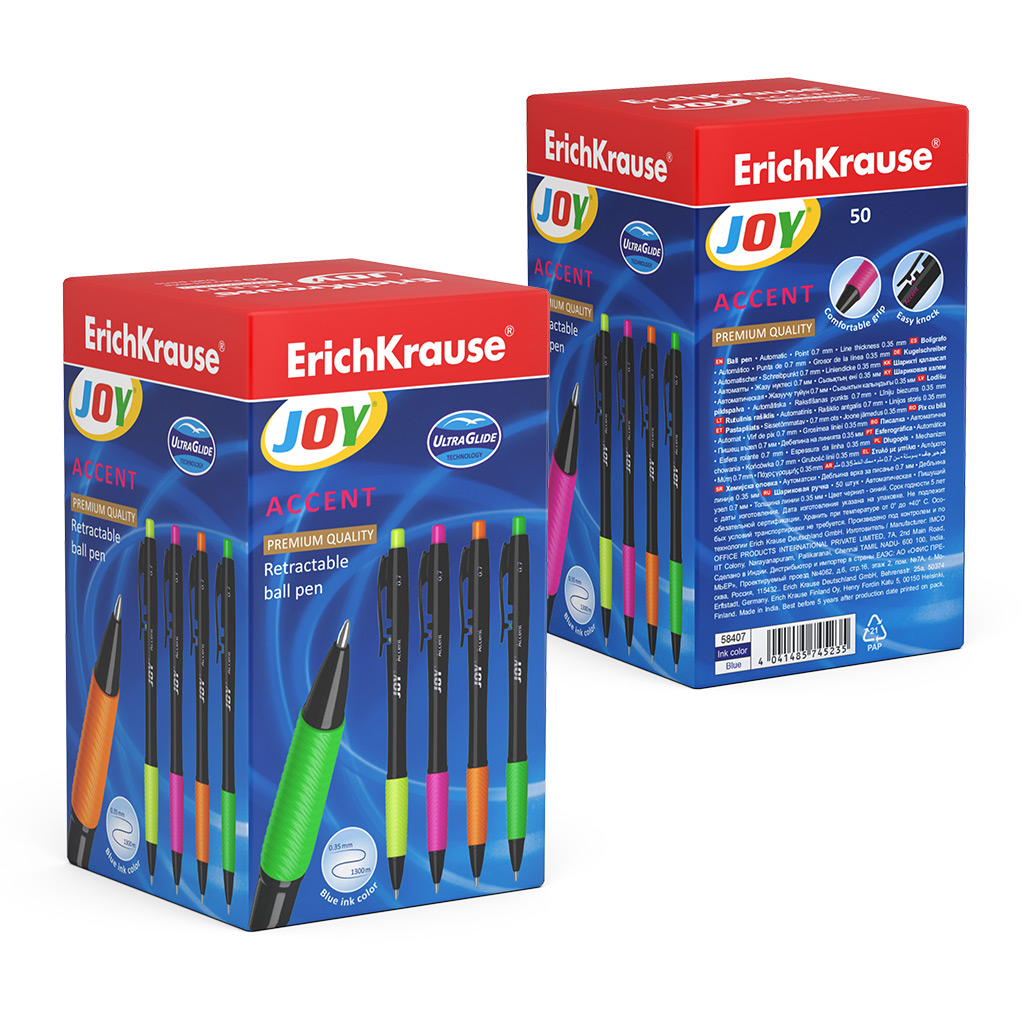 Ручка шариковая автоматическая ERICH KRAUSE "JOY Accent, Ultra Glide Technology", узел 0.7 мм, линия 0.35 мм, синяя, 58407