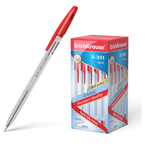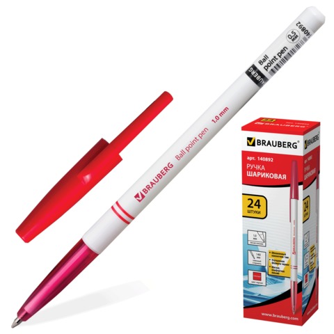 Ручка шариковая BRAUBERG "Офисная", корпус белый, узел 1 мм, линия письма 0,5 мм, красная, 140892