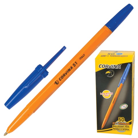 Ручка шариковая CORVINA (Италия) "51 Vintage", корпус оранжевый, узел 1 мм, линия 0,7 мм, синяя, 40163/02
