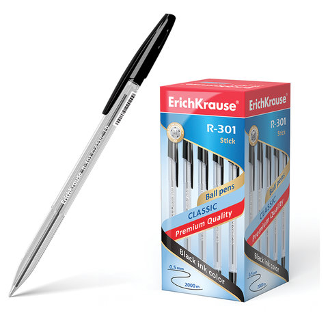 Ручка шариковая BIC "Round Stic", корпус черный, узел 1 мм, линия письма 0,32 мм, черная, 920568